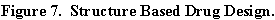 Structure based design, often called rational drug design, is much more focused than combinatorial chemistry. As shown above in Figure 7, it involves using the biochemical laws of ligand-receptor association discussed above to postulate ligand refinements to improve binding. For example, we discussed that steric complementarity is vital to tight receptor binding. Using the crystal structure of the complex, we can target regions of the ligand that fit poorly within the active site and postulate chemical changes to improve complementarity with the receptor. In a similar fashion, functional groups on the ligand can be changed in order to augment electrostatic complementarity with the receptor. However, the danger in altering any portion of the ligand is the effect on the remaining ligand structures. Modifying even a single atom in the middle of the ligand can drastically change the shape of the overall structure. Even though complementarity in one portion of the ligand might be improved by the chemical revision, the overall binding might be severely compromised. This is the difficulty in any ligand refinement procedure.